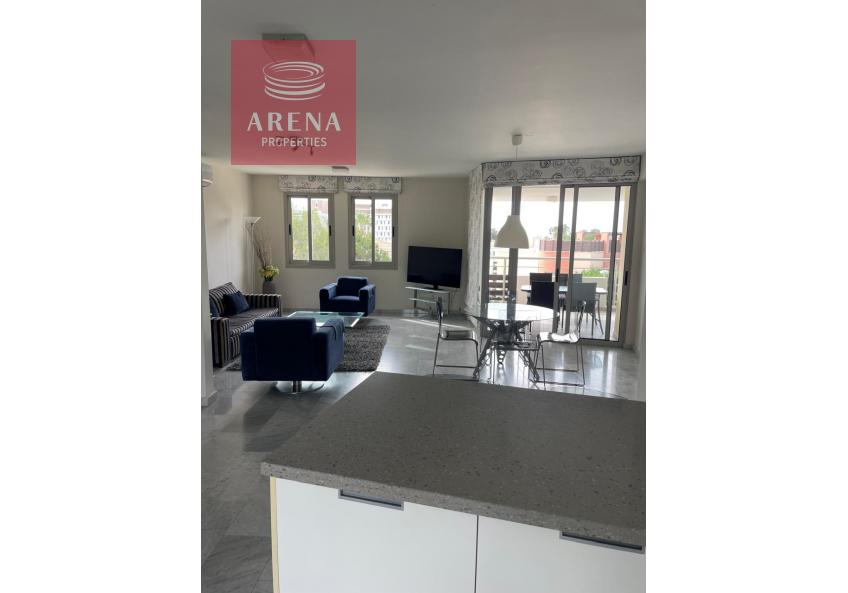This apartment comes fully furnished and equipped with high-quality furniture. It features an open-plan kitchen, living, and dining area, two well-sized bedrooms, a full family bathroom, a kitchen veranda, and a front veranda offering beautiful views. The property is fully air-conditioned, with laminated flooring in the bedrooms, and includes covered parking. The complex offers two swimming pools, a sauna, and a gym. One of Limassol's finest beaches with crystal-clear Mediterranean waters is located just across the road. Situated on the top floor, the apartment enjoys lovely views.