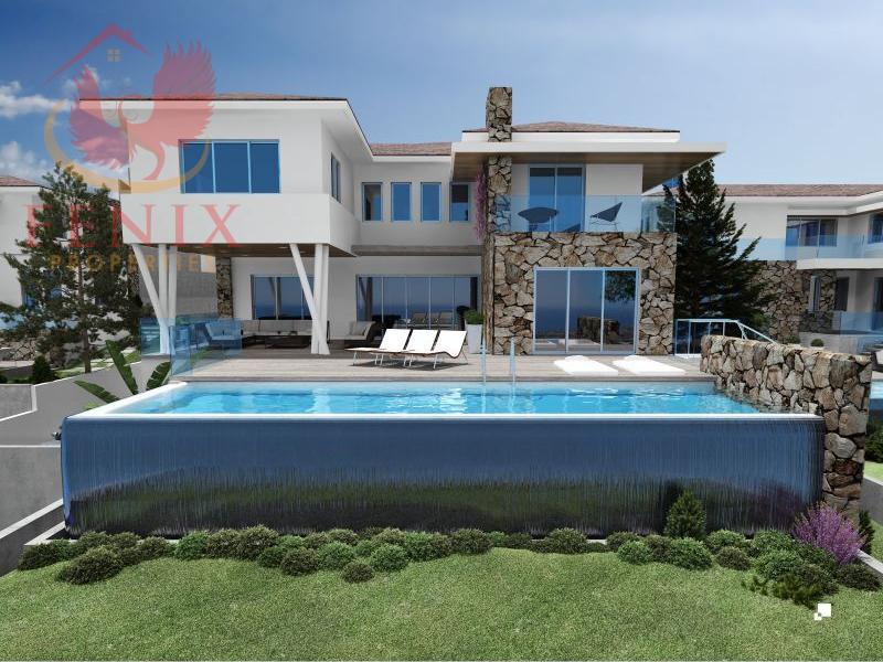 If you seek privacy, comfort and aesthetic pleasure, then you should see the project. It's hard not to fall in love with it. There are 16 VIP villas in total. The project as a whole and each villa separately is truly unique. They include extensive landscaped gardens and infinity overflow swimming pools. Each house is specially turned to the best possible view delighting the eye. Infinity edge swimming pools and unrestrained terrace areas run endlessly out toward the seascape.None of the houses look alike. The architectural sleek design of the villas conveys the location relevance of each of them. Swimming pools with infinity edge waterfall outline the spectacular sundecks and barbeque areas, which are carefully positioned to suit an array of entertainment and relaxing atmosphere. Fully glazed facade and double height ceilings capture the full transparency of villas, allowing the interiors to captivate the sun thus visually extending its areas. All rooms are designed so as to allow for the panoramic sea views from all the terraces. Every villa has a lower ground floor that may be used as a relaxation area. It merges amongst the large sun-deck areas of the infinity pool and landscaped gardens below allowing you to unwind whilst entering your home from the upper level whilst the sunshine filters down, escalating from the upper floors and creating an environment both soothing and composed. The villas are set upon a mountain side of Agios Tychonas near Armenohori village of the eastern Limassol suburbs, five minutes drive up from FOUR SEASONS hotel. Perhaps no other neighborhood will open to you such breathtaking vistas and the entire coastline of Limassol. The surrounding majestic views equal the supremacy of a luxury home.