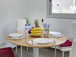 2 level apartment located in front of the Dassoudi area, the apartment is facing a quiet internal area of the development with the pool. A very quiet area without any noise from the tourist area. The apartment is located on the 1st floor and has two bedrooms, 1 bathroom + 1 guest toilet. Modern Apartments are fully furnished and equipped. Covered Parking.