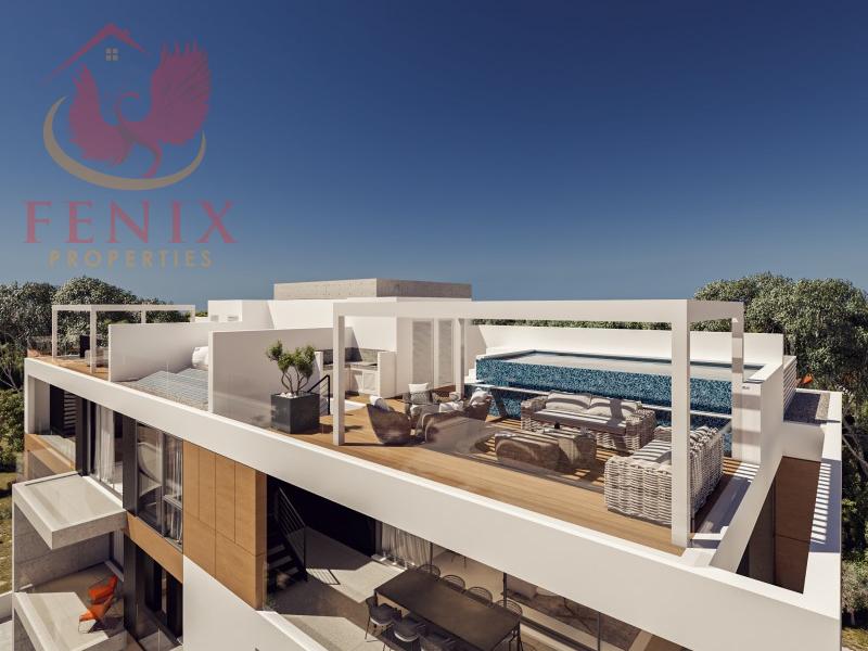 The complex is built on a plot of 1,069 m² adjacent to the park and consists of a 3-storey building with only 7 modern spacious two-, three- and four- bedroom apartments an penthouses with private pools on the roof terraces. The common areas of the complex include a common swimming pool with decking area around it and landscaped gardens. Each apartment has a private covered parking space and a store room. The apartments situated on the second and third floors benefit from sea views.