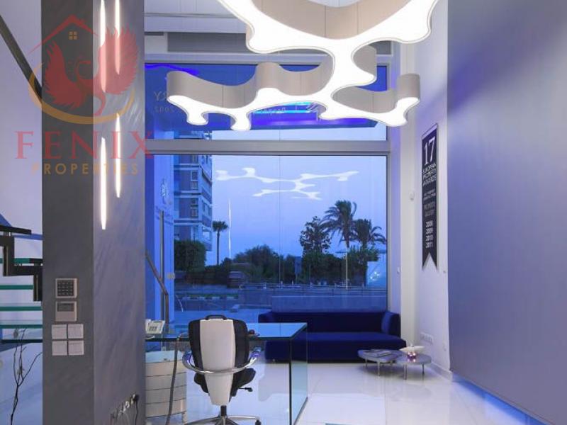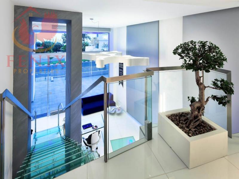 Available for long-term rent, this modern office space is ideally located on the front sea road in the heart of the Limassol tourist area (Germasogeia). Offering a total covered area of 183 sq.m., the property spans the ground and mezzanine floors.