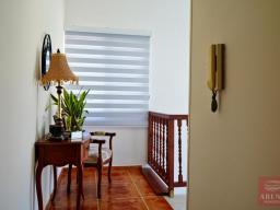 The property includes two covered parking spaces, with the option to convert one into a large storage room. Inside, the ground floor features a spacious, separate living room, a convenient WC with a shower, and a cozy bedroom with its own private balcony. There’s also a dedicated laundry room, an open-plan kitchen and dining area, plus a separate kitchen with picturesque views of the pool.