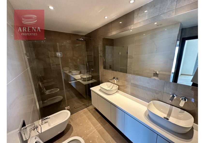 В квартире три просторные спальни, две ванные комнаты (с ванной и душем) и дополнительный гостевой туалет. Квартира не меблирована, что позволяет покупателю оформить ее по своему вкусу, при этом в ней уже есть необходимая бытовая техника, шторы и освещение. Комфорт круглый год обеспечивает полы с подогревом, а удобство проживания повышают лифт, одно крытое парковочное место, специальная кладовая и гостевая парковка для посетителей.