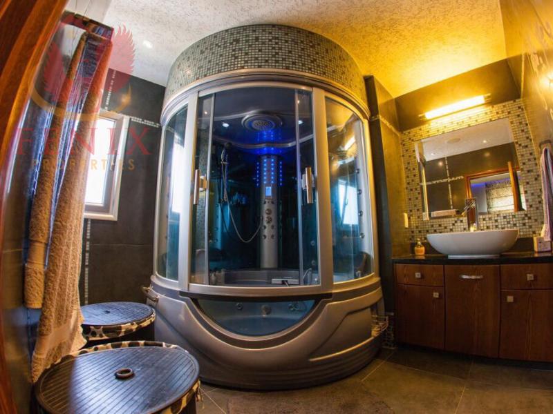 Пентхаус был построен в 2010 по самым высоким стандартам с использованием самых качественных материалов и превосходной внутренней отделкой и фурнитурой. Большинство плиток в квартире - марки Versace, все смесители - Grohe, все стены украшены камнем, полы - из мрамора самого высокого качества. Крытая площадь квартиры оборудована подвесным потолком, что создает прекрасное чувство от скрытой подсветки и всего освещения.
