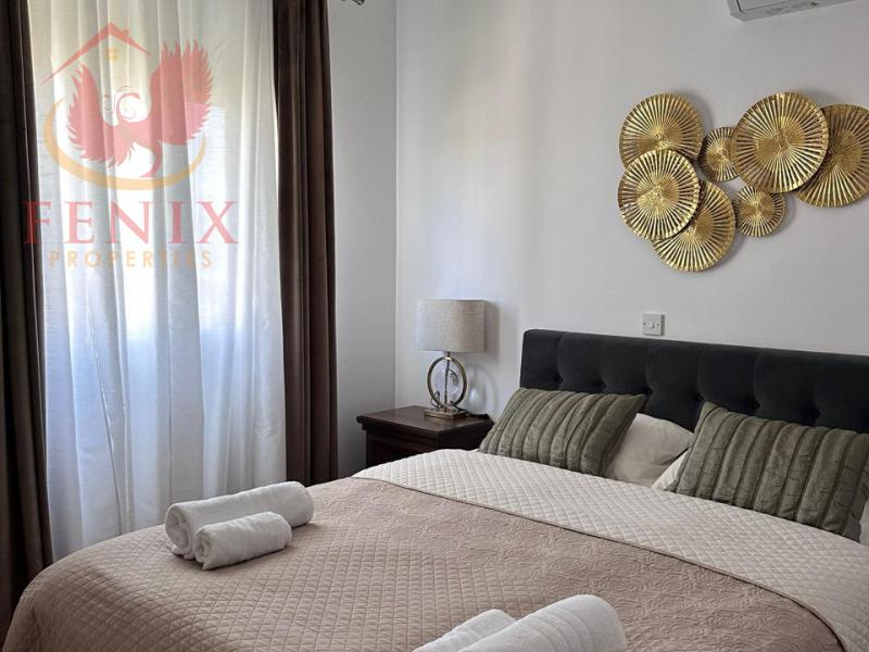 В квартире две спальни - одна с удобной двуспальной кроватью, а другая с двумя отдельными кроватями, что идеально подходит для семейного проживания или приема друзей. Современная ванная комната хорошо оборудована и дополняет общую элегантную эстетику квартиры.