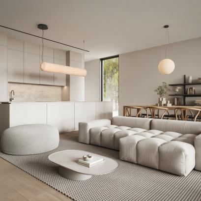 Дом расположен в современном жилом здании, отличающемся смелыми архитектурными линиями и озелененными балконами, что создает спокойную, современную атмосферу с момента вашего прибытия. Интерьер выполнен в лаконичном и функциональном стиле с упором на комфорт и качество: продуманная планировка, современная отделка и светлая, просторная атмосфера, созданная для удобной повседневной жизни.